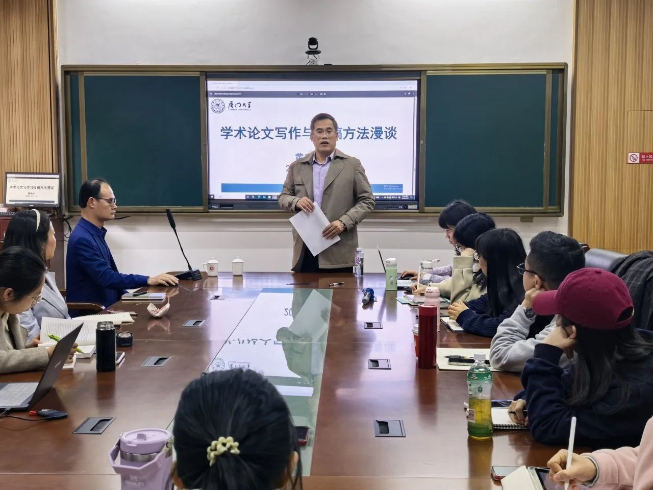 3月19日下午,厦门大学经济公司财政系教授、博士生导师,厦门大学学报(哲学社会科学版)编辑部主任黄寿峰教授应公司邀请,于博东110室作题为“学术论文写作与投稿方法漫谈”的专题学术讲座。pa娱乐游戏经理陈练军教授主持讲座,公司四十余名师生代表到场聆听。