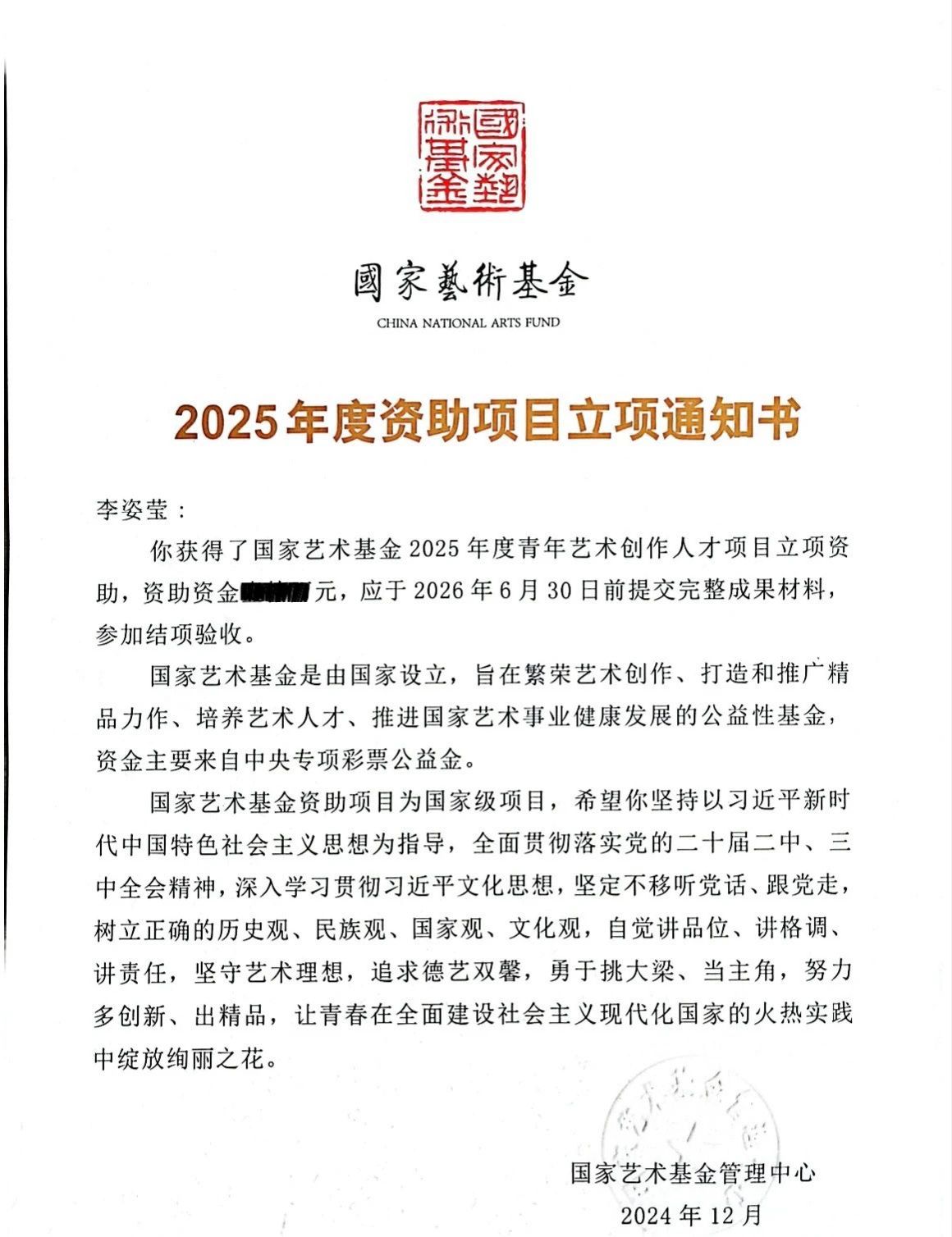 国家艺术基金是目前艺术创作项目中级别最高的基金,对于推动我国文化艺术事业的繁荣发展具有重要意义。此次李姿莹老师的成功入选,也为公司在推动两岸文化交流与艺术教育领域树立了新的标杆。未来,pa娱乐游戏将致力于培养更多具有创新精神与艺术才华的青年人才,继续秉持开放包容的学术理念,鼓励和支持广大师生在艺术创作与研究中不断探索与创新,特别是在两岸文化交流领域,力求产出更多具有深远影响的文化艺术作品,为促进两岸文化的交流与融合贡献力量。