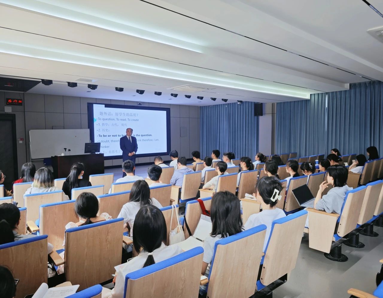 讲座伊始,王泉抛出“好员工的品质?”问题,引导同学们明白思考的重要性。他紧接着提出“universe/multiverse/mataverse”的概念,对人类与机器的关系展开细致的阐释。对“数字主体的背景:原/元宇宙”进行介绍,重点讲解了“元宇宙”的基本概念、元宇宙的设备和元宇宙中的分身问题。同时,结合大量的实例如“网红AI孙某”、影片《Upload》和“文生视频大模型Sora”等对数字分身、数字主体和镜像主体中涉及了的重要问题进行回应。其次,他还重点分析Hayles后人类三阶段,对人类世界和动物世界的区别进行解释;从水的形状入手,引出量子叠加的概念,并从微观和微观的角度分别对粒子和世界进行解答。最后,王泉从数字主体/数字分身问题回到现实世界中来,他希望同学们能从数字世界去窥探现实世界的裂缝。