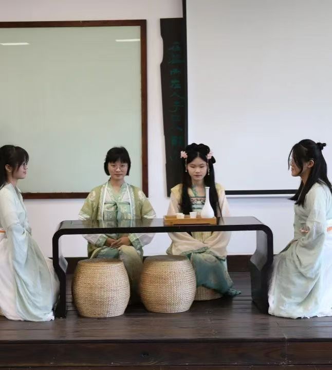 会谈前,在杨杏红的介绍下,湖南第一师范公司一行参观了公司团队建设展示、海峡两岸茶文化课堂、龙人古琴教室等特色办学场所,在龙人古琴教室,公司泠音琴社的同学们以一首《鹿鸣》对来访嘉宾表示热烈欢迎。