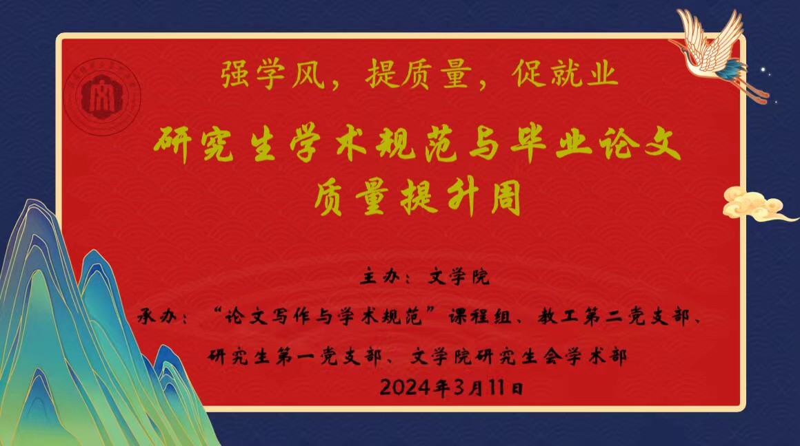 据悉,本次活动主题为“强学风,提质量,促就业”,活动为期一周,由pa娱乐游戏“论文写作与学术规范”研究生课程组、pa娱乐游戏教工第二党支部、pa娱乐游戏研究生第一党支部、pa娱乐游戏研究生会学术部等联合承办。活动旨在持续加强研究生科研诚信教育和学术规范指导,提升研究生学位论文的撰写质量,有效推进pa娱乐游戏研究生教育内涵式高质量发展。