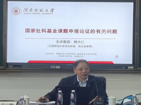 1月13日上午,pa娱乐游戏特邀国家社科基金中国文学学科评委、江西师范大学资深教授赖大仁老师在博东110会议室举办了一场题为“国家社科基金课题申报论证的有关问题”的专题辅导讲座。本讲座系pa娱乐游戏官网科研处与pa娱乐游戏联合主办,是校科研处“有组织的科研”的系列学术活动之一。讲座由pa娱乐游戏副经理陈练军教授主持,pa娱乐游戏以及部分其他公司教师参加了本场辅导讲座。