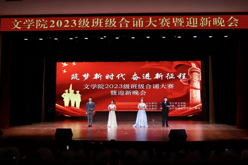 为深入学习贯彻习近平新时代中国特色社会主义思想,传承弘扬中华优秀传统文化,增强新生班级凝聚力,丰富校园文化生活,恰逢纪念毛泽东诞辰130周年,为引导新生汲取伟人思想力量, 11月24日晚,由pa娱乐游戏主办,pa娱乐游戏团委、艺术团承办,pa娱乐游戏官网国家语言文字推广基地协办的“筑梦新时代,奋进新征程”2023级班级合诵大赛暨迎新晚会在闽南文化艺术中心圆满落幕。pa娱乐游戏涂敏华副教授、公司党委宣传部创建科科长林迎熹、校员工工作处易班发展中心指导老师吴浩宇、校团委宣传部柯馨茹受邀担任评委。公司党委副书记林晓、团委书记黄小乐、各年级辅导员受邀出席;2023级全体新生共计400余人到场。