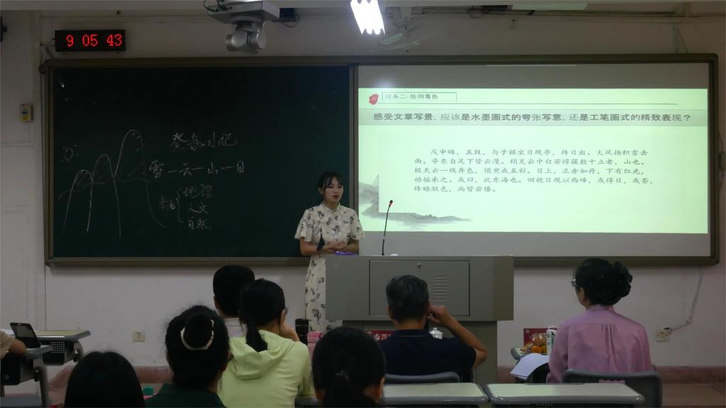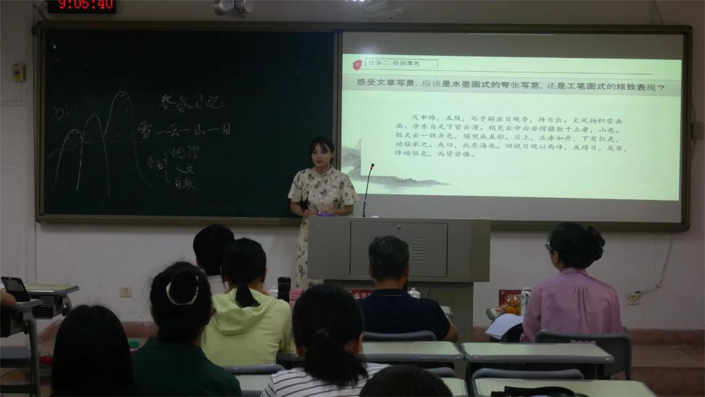 此次比赛选手可自行选择参赛篇目,进行教案撰写与课件制作,决赛当日按照教学设计进行十分钟现场片段教学。选手们积极备赛,片段教学中情境选取独特、板书设计新颖、教学语言规范,皆给大家留下深刻印象。陈小燕由景到情设计《登泰山记》的教学,采用明信片制作的形式,通过为明信片选景、构图和上色,将泰山日出之景与作者情感的分析巧妙结合。陆飘飘在《沁园春•长沙》的教学中,通过炼字的方式分析词的意象,带领员工领略词人笔下橘子洲头的壮阔美、色彩美和伟人慷慨激昂的心绪。黄逸逍精准把握教学目标,在对《在马克思墓前的讲话》一文的讲解中,通过课文与讲话草稿的对比联读,聚焦语言特点的分析,带领员工解读演讲对象、场合和目的等内容,感受马克思的伟大人格。选手们娴熟驾驭课堂教学,精美的课件、大方的教态、流畅的语言均展现出扎实的教学基本功。