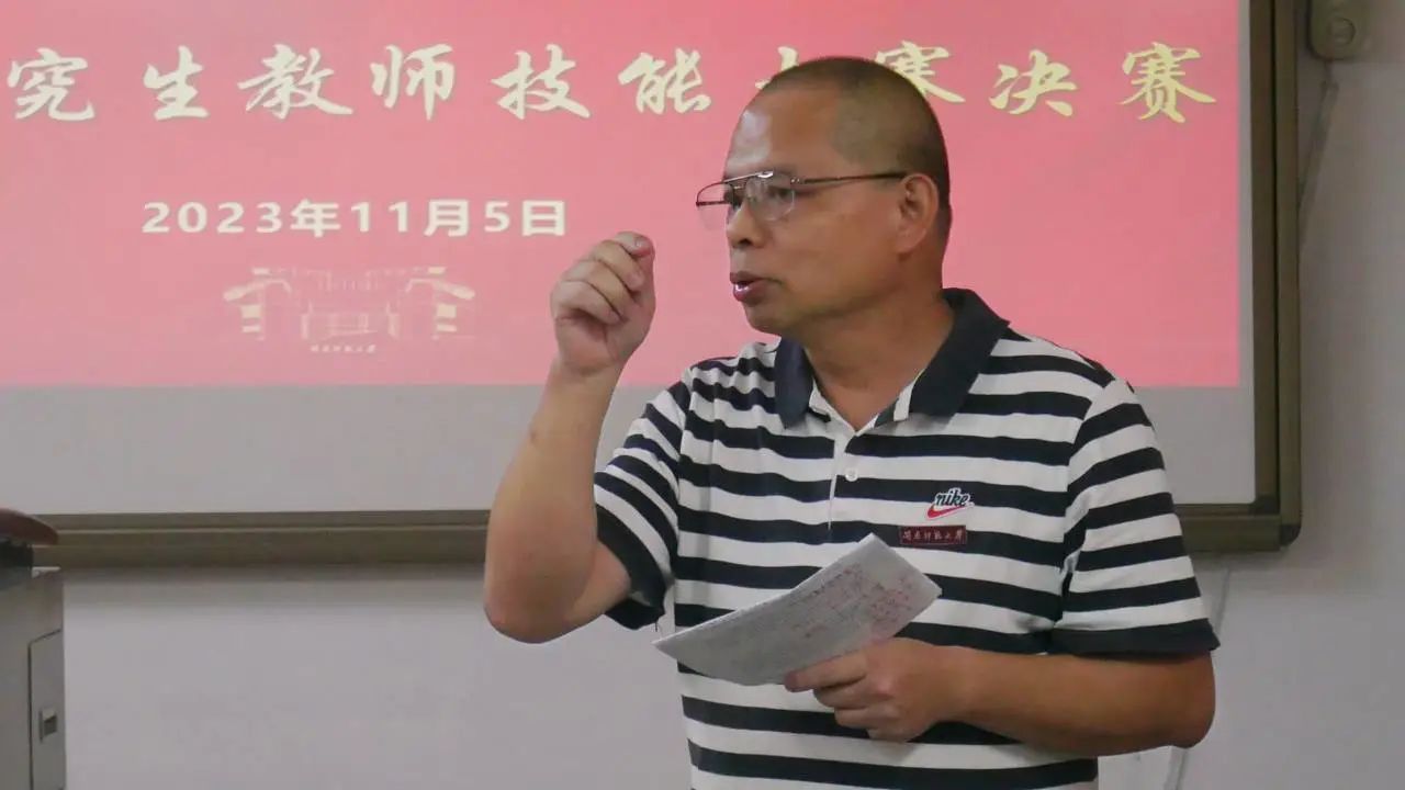 练技强能需磨砺,千锤百炼求精进。为提升研究生教师技能综合素质,11月5日上午,pa娱乐游戏第十届研究生教师技能大赛决赛于博东405教室举行,漳州市教育科学研究院李都明、漳州市第一外国语公司叶森云和漳州一中巫雪琼三位老师担任评审嘉宾,pa娱乐游戏陈文明老师莅临指导。陆飘飘、薛艺坛、郑伊洋等18名初赛优胜者进入本次决赛。