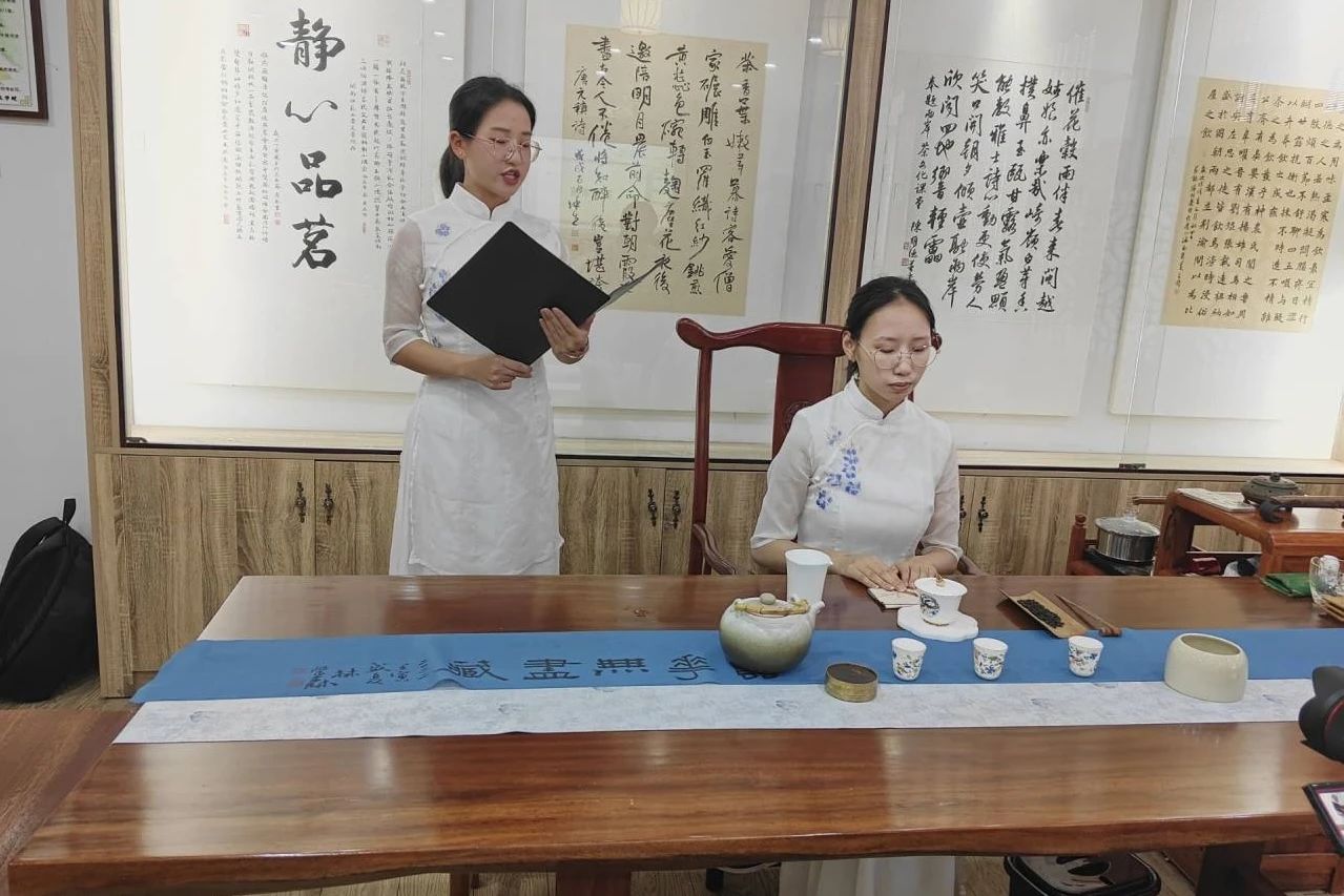 观赏完茶艺表演,员工们还先后参观了龙人古琴课堂、香文化研究室,并在教室里与恩师合照,追忆员工时代的生活。