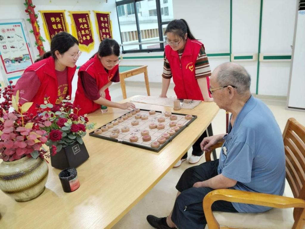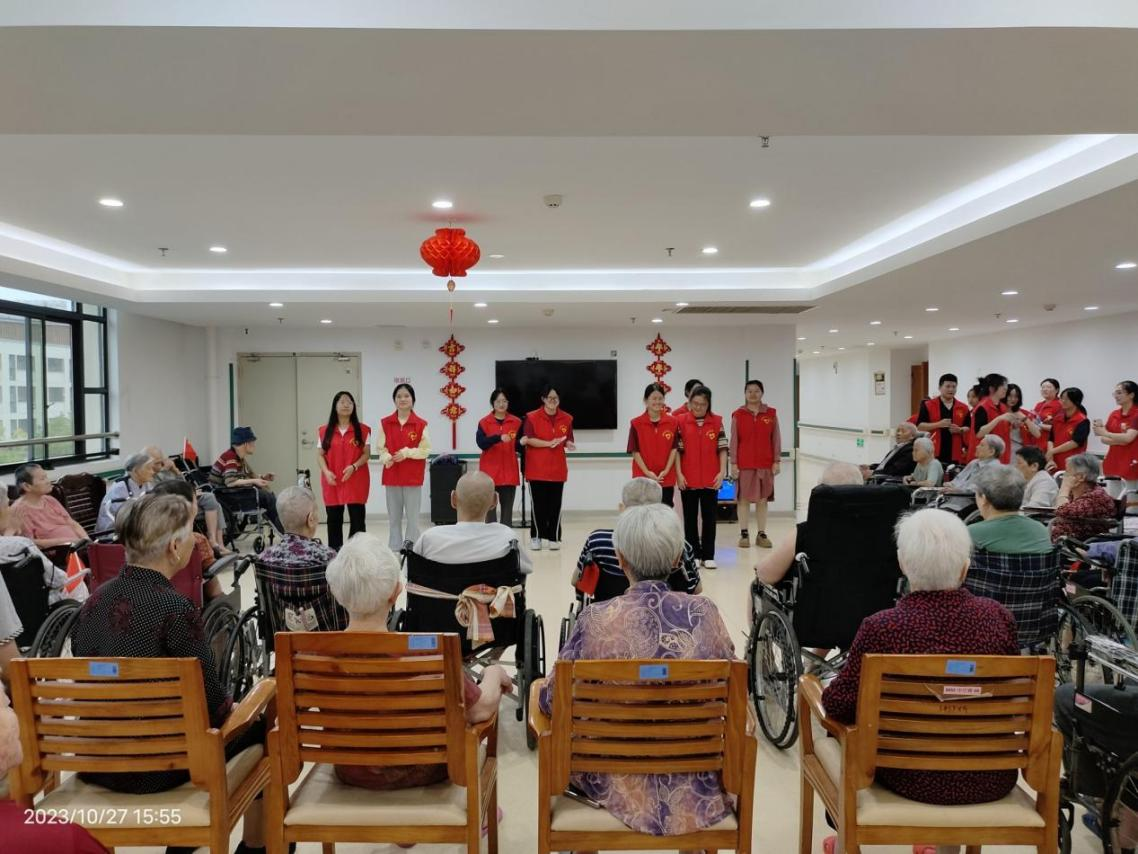 为弘扬中华民族敬老、爱老的优秀传统美德,传播社会正能量,pa娱乐游戏2022级师本6班团支部于2023年10月27日前往漳州市正兴养护院开展重阳节敬老活动。活动过程中,志愿者们和养护院的老人们一起进行了制作手工、下象棋、唱歌、表演手势舞等一系列互动。现场其乐融融,一片欢声笑语。老人们不仅在志愿者们的引导下锻炼了手部肌肉,也在节目和游戏中收获了陪伴与欢乐。