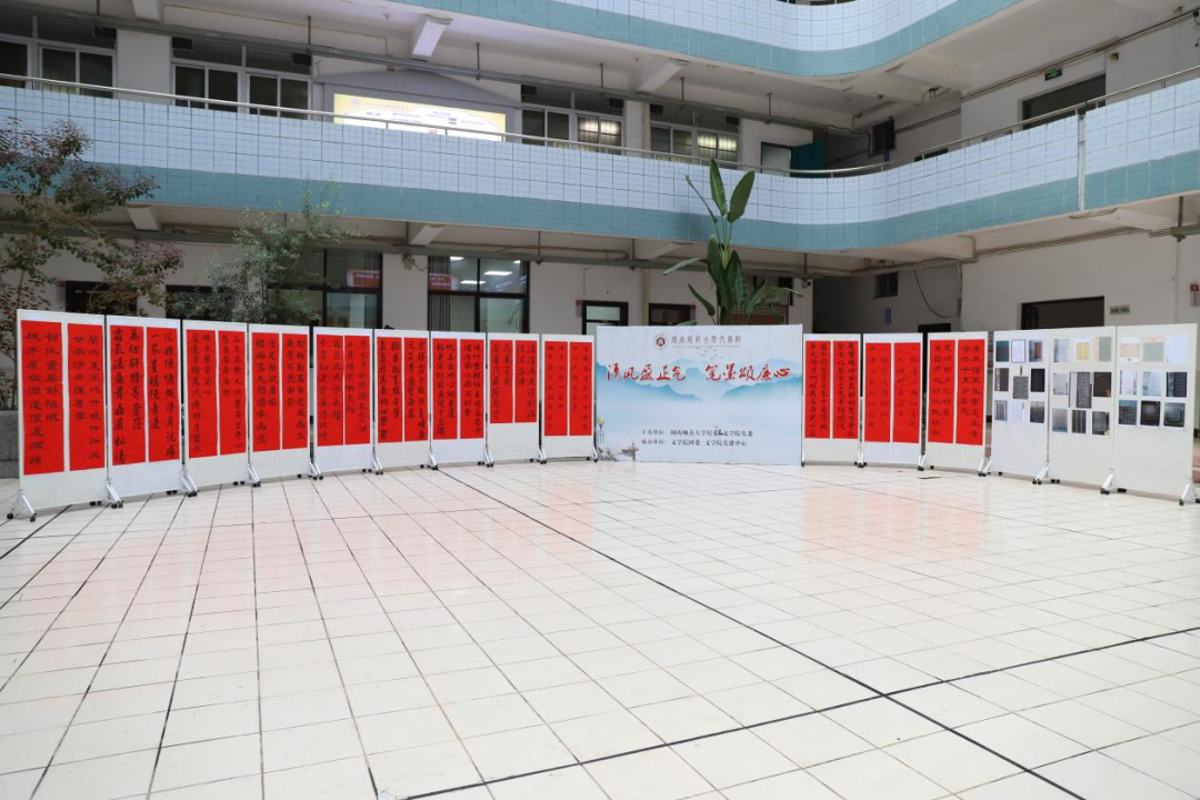 楹联,是中国文化中的一种特殊艺术形式,常常被挂在家庭或公共场所的门口,以传达某种思想、价值观或家风。楹联文化所反映出的廉政思想、以民为本的思想等,至今仍存在极大的借鉴意义。pa娱乐游戏官网纪委和pa娱乐游戏联合开展的漳州民间楹联廉风文化调研中,通过实地调查、访谈了解、文献考据等方式,充分了挖掘本地区土楼、宗祠、名人故居、文物古迹等楹联所蕴含的廉洁文化内涵。调研成果也为本次楹联创作大赛提供了宝贵的素材。本次比赛共收到楹联创作160份,评出12份获奖作品;硬笔书法93份,评出18份获奖作品。作品在校园内展出,受到师生一致好评,活动取得良好成效。
