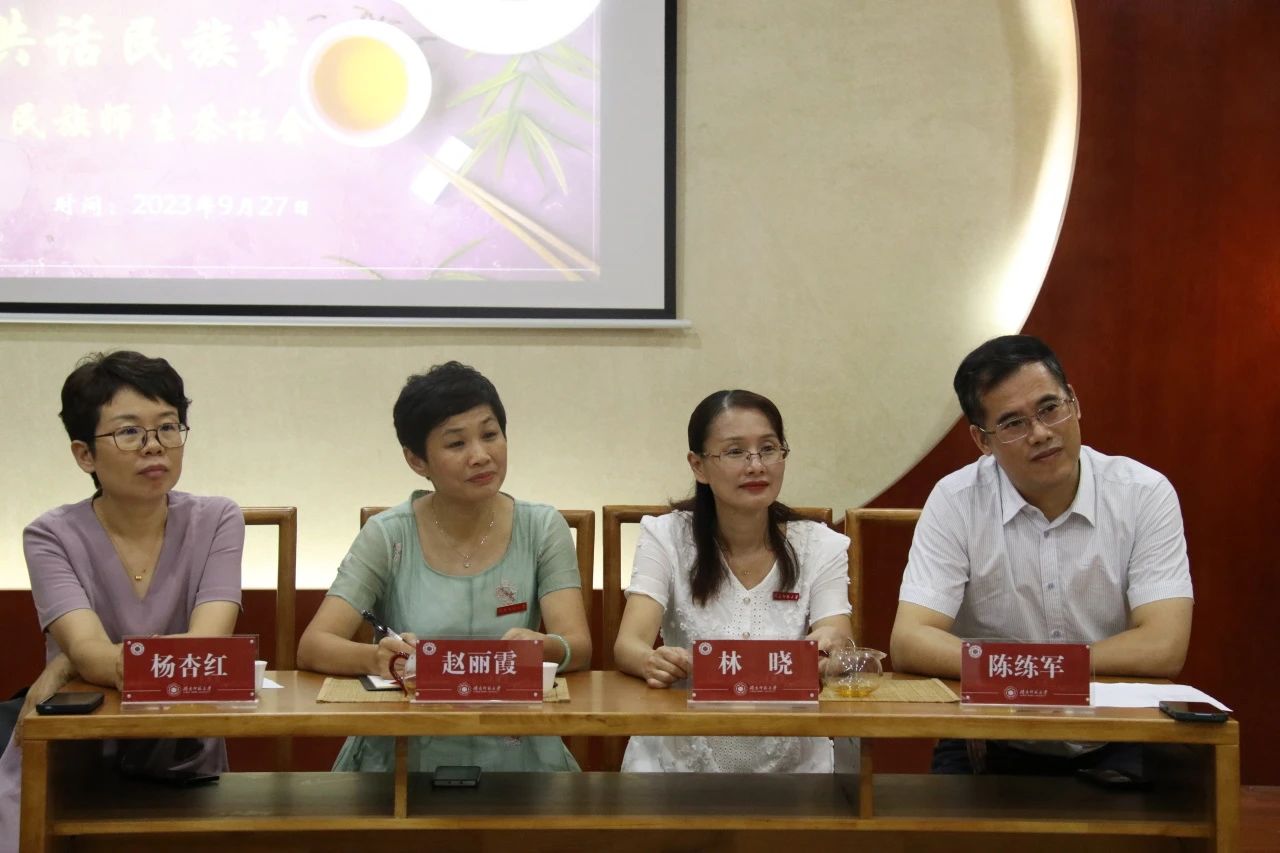 为持续深入学习贯彻党的二十大精神,进一步传承、弘扬中华民族文化,加强与少数民族及港澳台员工的沟通和交流,促进民族团结进步,铸牢中华民族共同体意识,9月26日晚,pa娱乐游戏于海峡两岸茶文化课堂召开2023级新生少数民族及港澳台师生茶话会。公司党委书记赵丽霞、副经理杨杏红、陈练军,团委书记黄小乐、23级新生辅导员杨书涵、姚震、23级少数民族及港澳台员工代表到场参加,本次茶话会由公司党委副书记林晓主持。