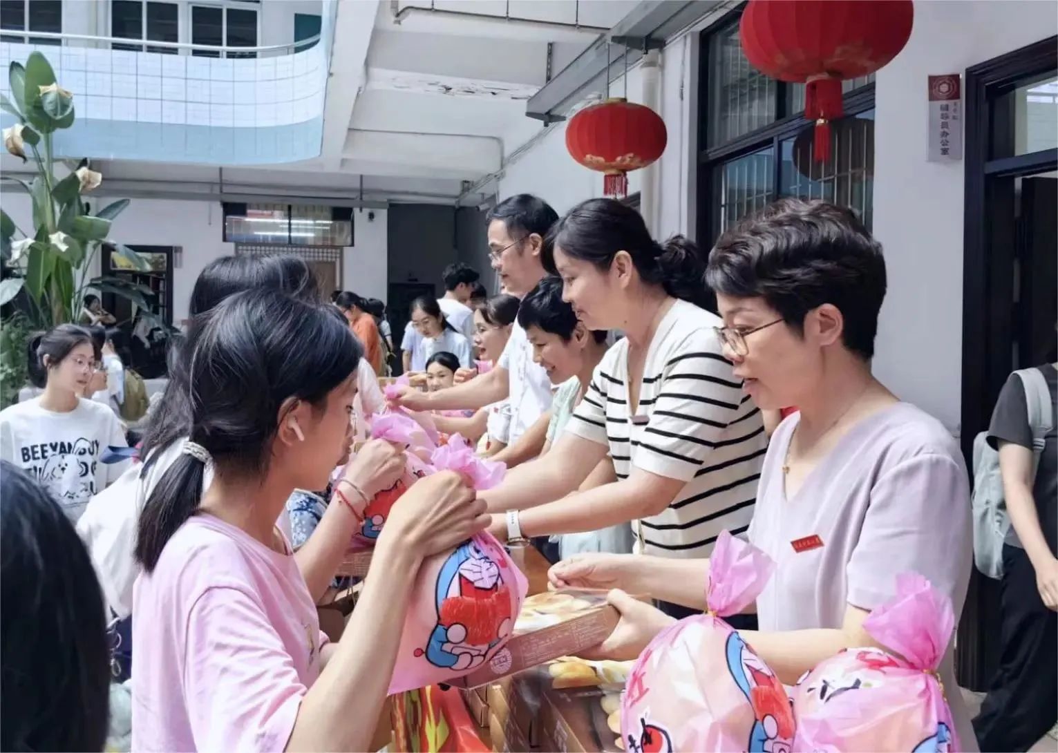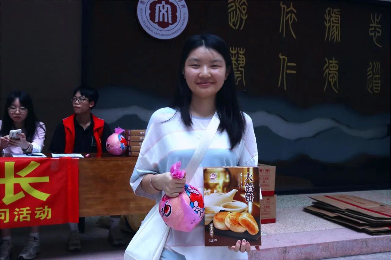 活动中,一盒盒包含着浓浓情意的月饼,于香甜之感中蕴含相思之情,一个个蕴藏着吉祥如意的柚子,寄托老师对同学们的美好祝愿。当这些礼物发放到员工手中时,这些满载着“团团圆圆,平安幸福,万事顺遂”寓意的慰问品,也将祝福传递到他们的心中。同学们的脸上洋溢着喜悦的笑容,也纷纷向老师送去节日的祝福和感谢。