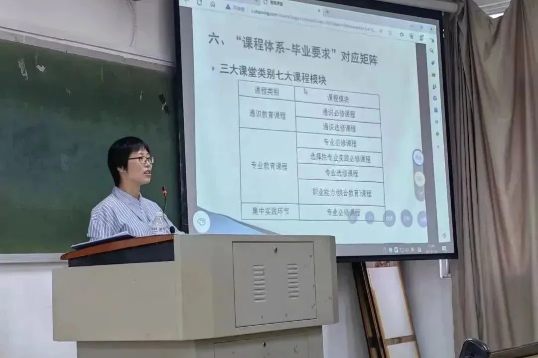 会上,三位老师从专业简介、培养目标、课程设置、课程结构比例四个方面详细展开解读。他们向新生们介绍了专业的基本概况,而后重点围绕“师德高尚、好学乐教、善于育人、综合发展”为大家阐明“培养具有优秀教师发展潜质的中学语文教育和教育管理人”这一专业培养目标;随后,三位老师还系统地介绍了专业的课程设置与课程结构比例,帮助新生们充分地了解到了大学的学业任务及课程学习计划。此外,老师们指出,专业在制订人才培养方案时能够主动适应社会发展对人才的培养需求,做到以员工发展需求为导向,科学地制定专业培养目标,突出了综合素质、实践能力的培养。本次本科人才培养方案解读加深了23级新生对专业的了解,激发了新生的专业学习兴趣,强化了专业思想,使其更加明确未来努力奋斗的方向。