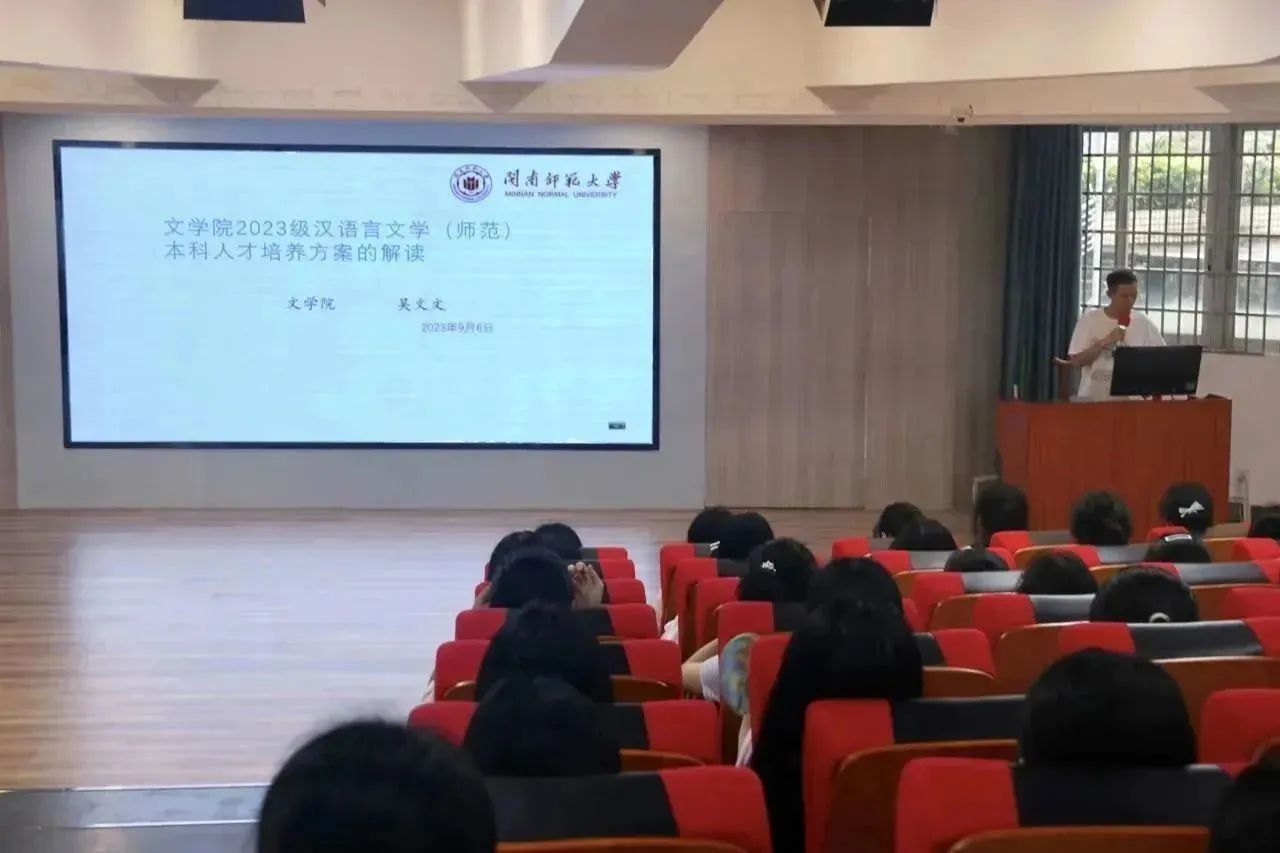 为使2023级新生能够更好地明确老员工活的目标和定位,适应新环境,做好迎接多彩的老员工生活的准备,9月6日,汉语言文学专业负责人林颂育、汉语言文学(师范)专业负责人吴文文、汉语国际教育系主任陈瑞松分别在博东606、博西梯一和博东609开展了本科人才培养方案解读大会,全体23级本科新生到场参加。