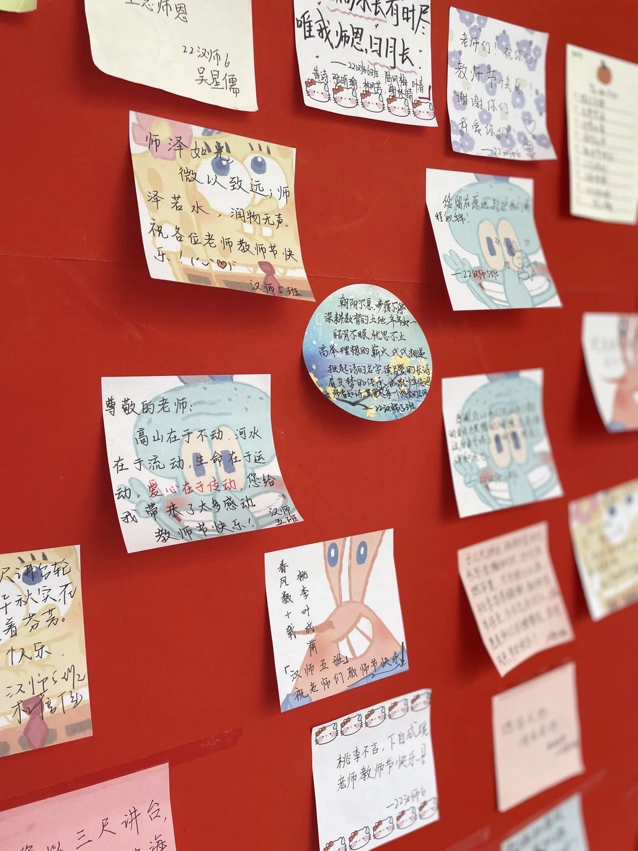 日暖风和绽桃李,笔酣墨浓写春秋。为了表达对老师的美好祝福,此次活动于博东一楼设立了教师节表白墙,同学们用便利贴一起为老师们留言送祝福。
