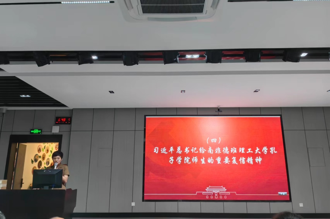 赵丽霞传达学习习近平总书记在二十届中央政治局第三次集体学习的讲话精神、习近平总书记在中央全面深化改革委员会第二次会议中《关于高等公司、科研院所薪酬制度改革试点的意见》的讲话精神、习近平总书记在全国生态环境保护大会上的重要讲话精神、习近平总书记给南非德班理工大学孔子公司师生的重要复信精神、习近平总书记对网络安全和信息化工作作出的重要指示精神。
