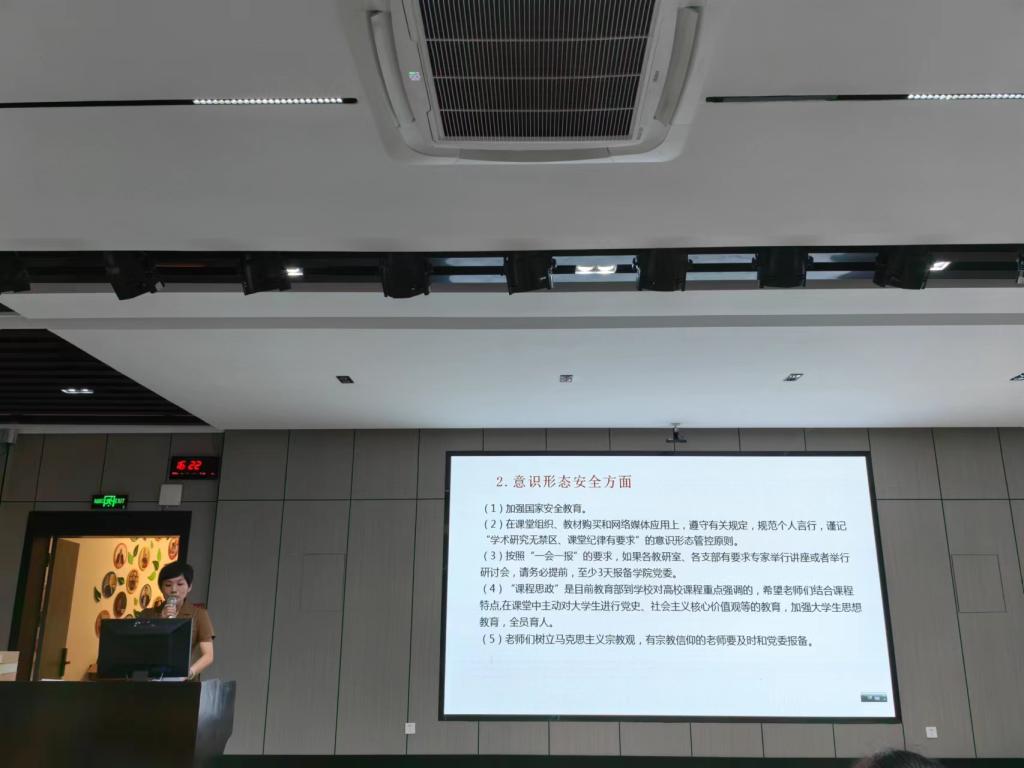 赵丽霞强调,各教研室、各支部要做好学习安排,进一步强化思想政治引领,凝聚奋进新时代的信心与力量。随后,赵丽霞对新学期党建、思想政治教育工作、安全稳定与意识形态工作进行了部署,并围绕《新时代高校教师职业行为十项准则》开展新学期师德师风教育。