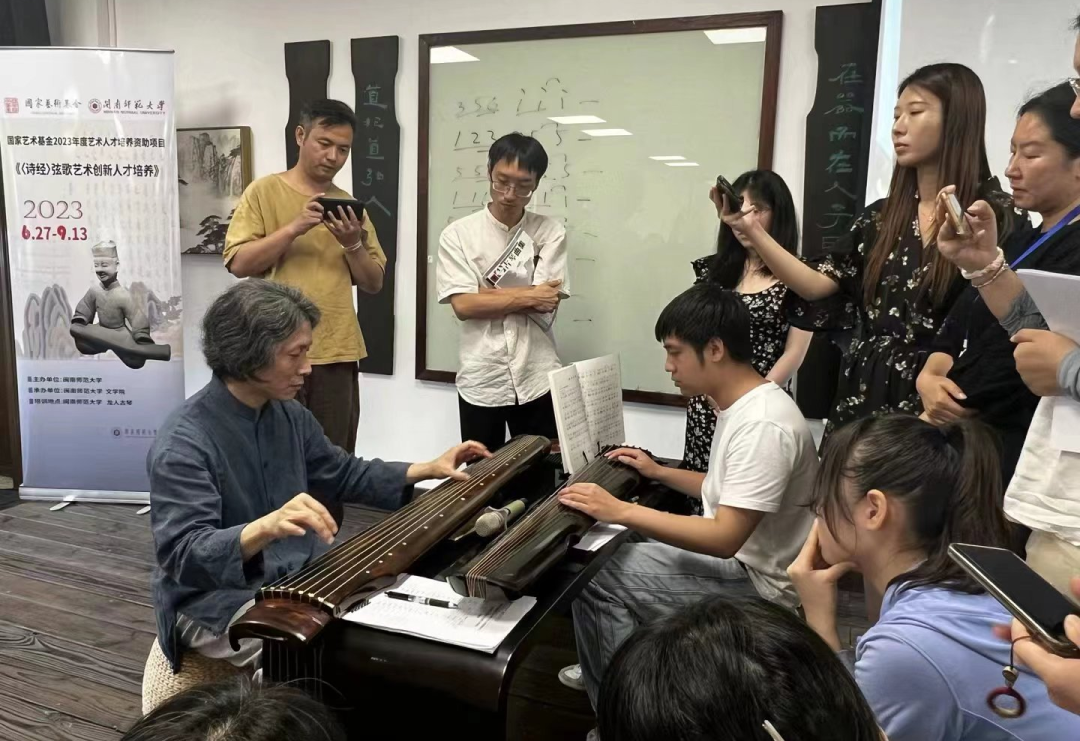 7月3日上午,谢东笑教授以音乐为媒,在《<诗经>弦歌艺术创新人才培养》项目课程中指导学员《诗经·桃夭》弦歌的排演,在琴音悠扬的唯美意境中,学员彷若穿过千年,奔赴一场春天的婚宴。