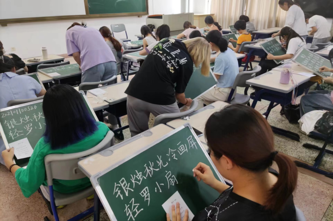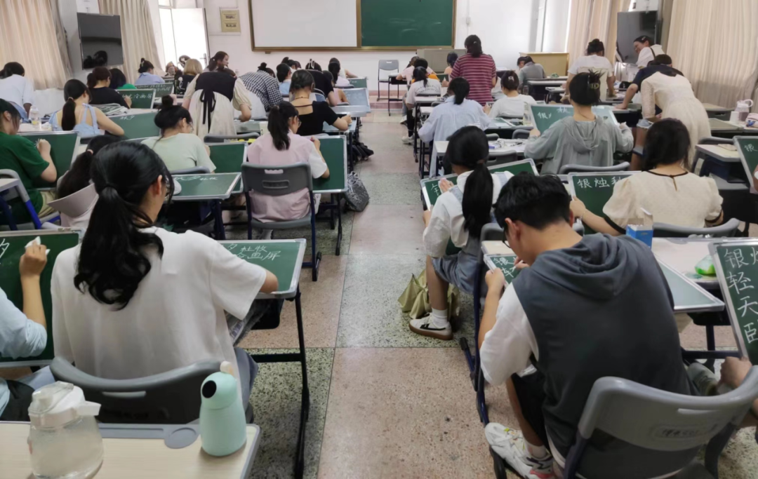 为加强师范生“三笔字”书写基本技能,提高规范使用汉字的意识,pa娱乐游戏在6月份举行第一届师范生粉笔字书写鉴定活动,参加此次粉笔书写鉴定的为21级汉语言文学(师范)专业全体员工。
