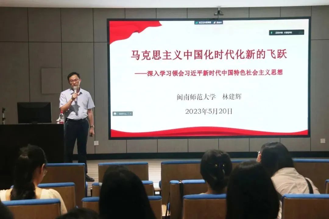为深入开展学习贯彻习近平新时代中国特色社会主义思想主题教育,提升党员理论素养,增强党员党性意识,更好地发挥党员先锋模范作用。5月20日下午,马克思主义公司林建辉教授应邀为pa娱乐游戏分党校第三期正式党员培训班师生党员们讲授《马克思主义中国化时代化新的飞跃》专题党课,公司党委副书记林晓主持。