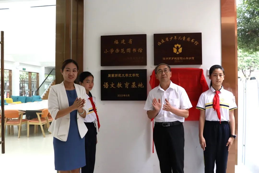 活动伊始,陈国兵为本次活动致辞,他对各位嘉宾的到来表示热烈欢迎,表达了对未来文学新旅程的期许,并为本次活动拉开了序幕。随后,黄金明、曾超为“pa娱乐游戏语文教育基地” 揭牌,陈子铭、曾超为“漳州市作家协会小作家培育基地”揭牌。揭牌仪式后,萧萧、黄金明等一行人参观了芗城实小芳华书苑,感受芗城实小百年书香气息。