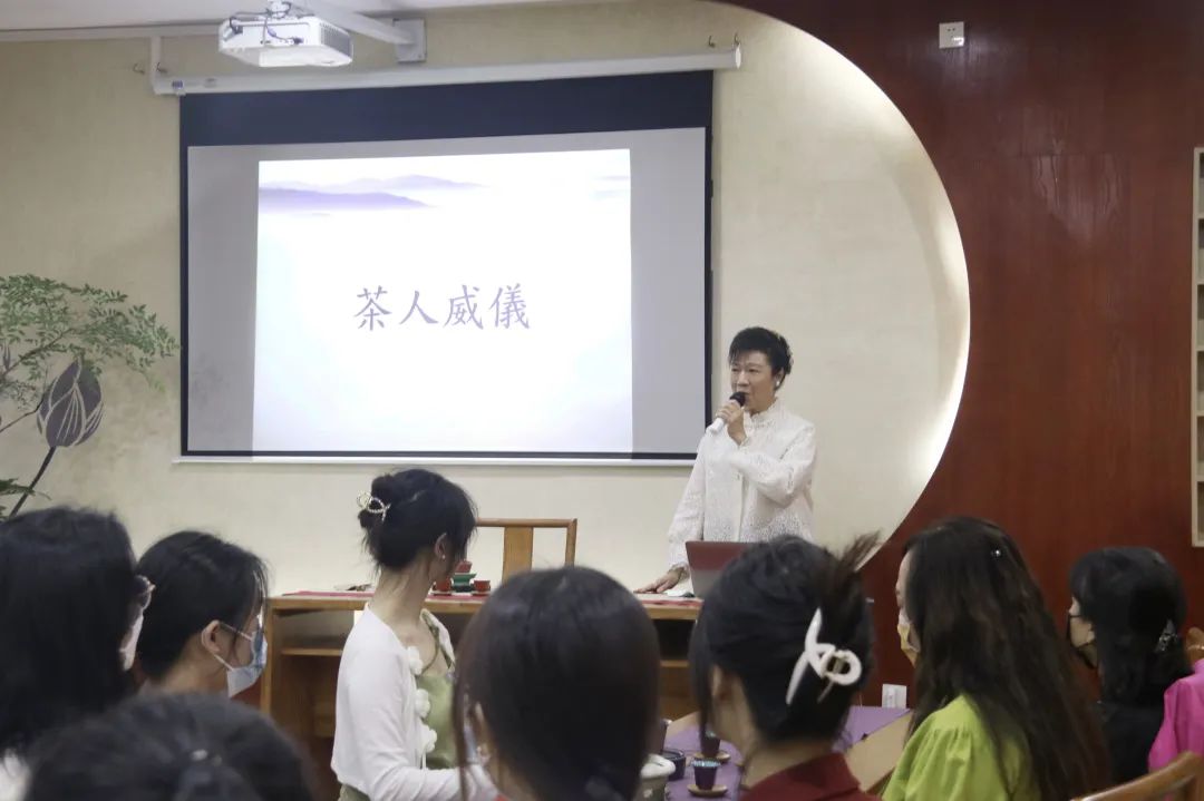 李阿利以白居易的诗《山泉煎茶有怀》引出关于“爱茶人”的话题,再切入“茶人威仪”这一主题。她表示,茶人不仅是要懂茶,还要以茶作为个人修养的媒介,以茶的本质作为个人修养的态度。茶之美在于德,而礼是德的外在形式。李阿利认为学茶的真正目的是,在学茶过程中学习礼仪、礼貌和礼节,学习为别人服务的一颗心,学会等待、专注,在行茶中训练静定的功夫,学会关照自己的情绪,学会“不以物喜,不以己悲”。从茶文化中,我们将学习到美姿美仪,即美丽的姿势、体态和优美的举止、容貌。李阿利指出人缘不在身体,而是在气质。一个人的气质同时受到先天和后天的影响,因此要有好的人缘,就要在日常生活中修养忍让的气质,为自己的个人形象加分。