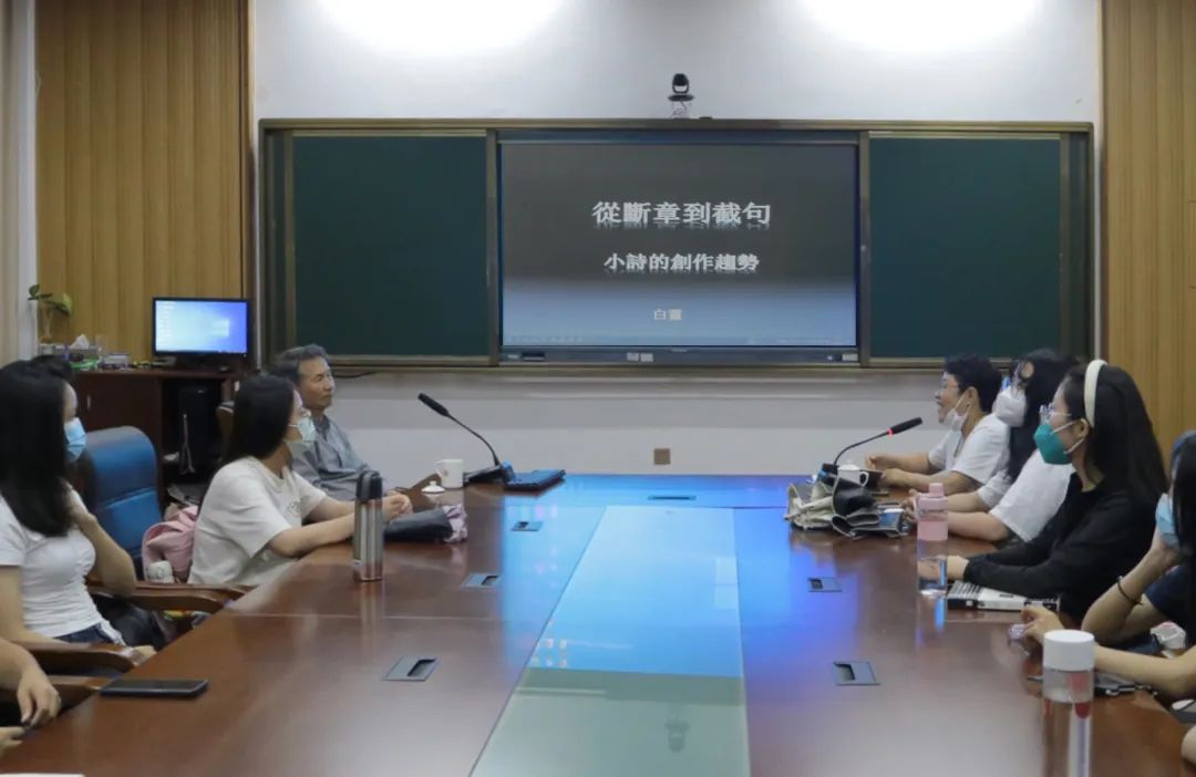 台湾诗人白灵以“从断章到截句——小诗的创作”为题于博东110开展学术讲座,汉语言文学系主任肖模艳及汉语言文学(师范)专业员工到场参加,讲座由肖模艳主持。