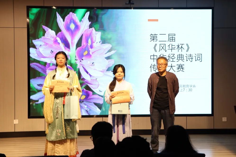 随后,王朝华对大赛作出点评,肯定了通过演唱来展示诗词之美的方式,提出两点建议:一是希望同学们可以加深对古典诗词、音乐的理解,使表演与演唱、朗诵的结合更加相得益彰;二是建议同学们可以更加注重细节,使表演更加完美。