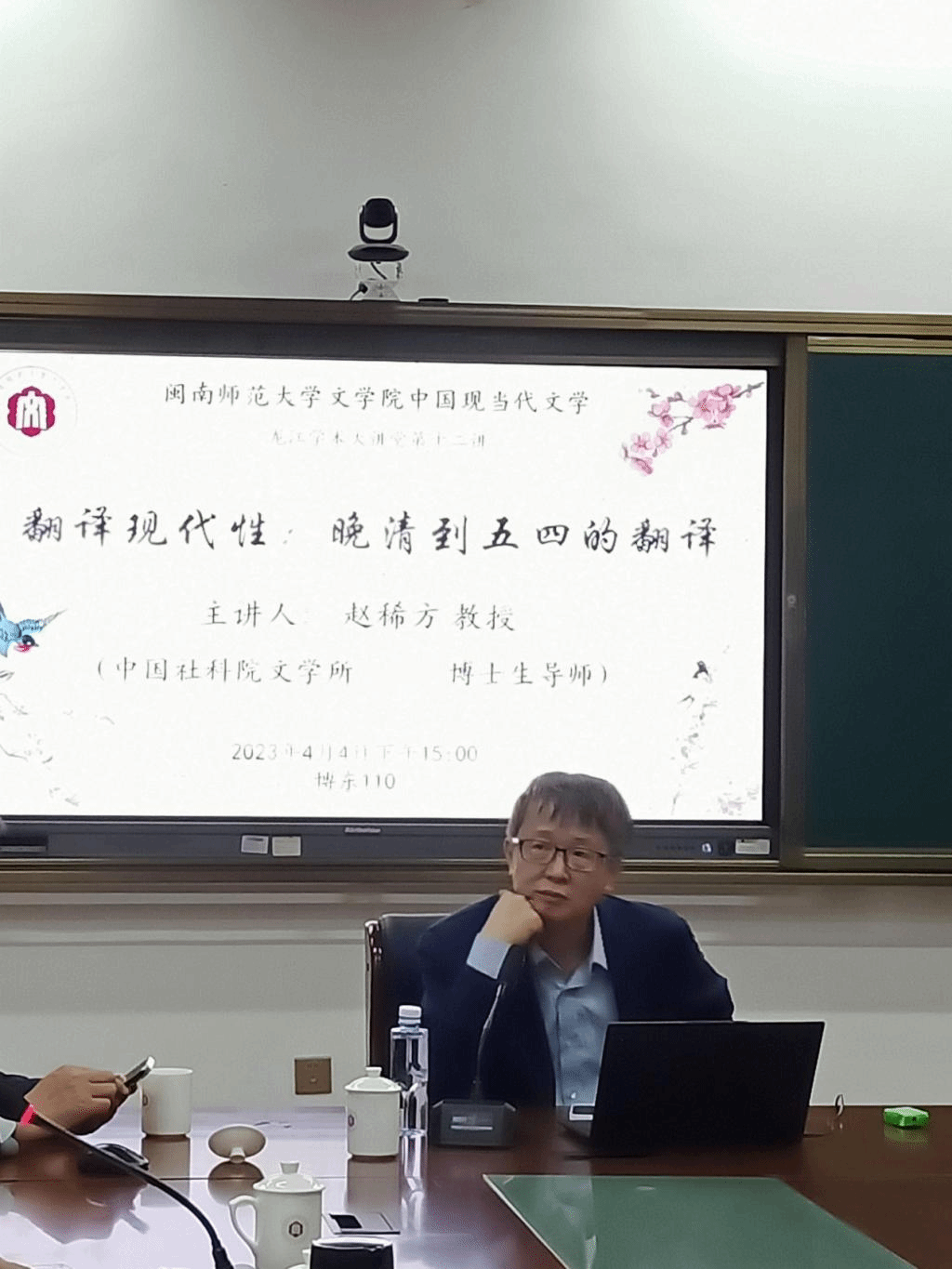 4月4日下午,pa娱乐游戏中国现当代文学“龙江学术大讲堂系列讲座”第十二讲“翻译现代性:晚清到五四的翻译”在博东110教室举行。本次讲座邀请到了中国社会科公司博士生导师赵稀方教授主讲,讲座由中国现当代文学学位点负责人周军教授主持,外国语公司副经理王羽青教授应约担任了本场讲座的点评嘉宾,胡明贵教授、向忆秋教授、陈金星副教授、郑少茹博士、吴思捷博士也出席了本场讲座。
