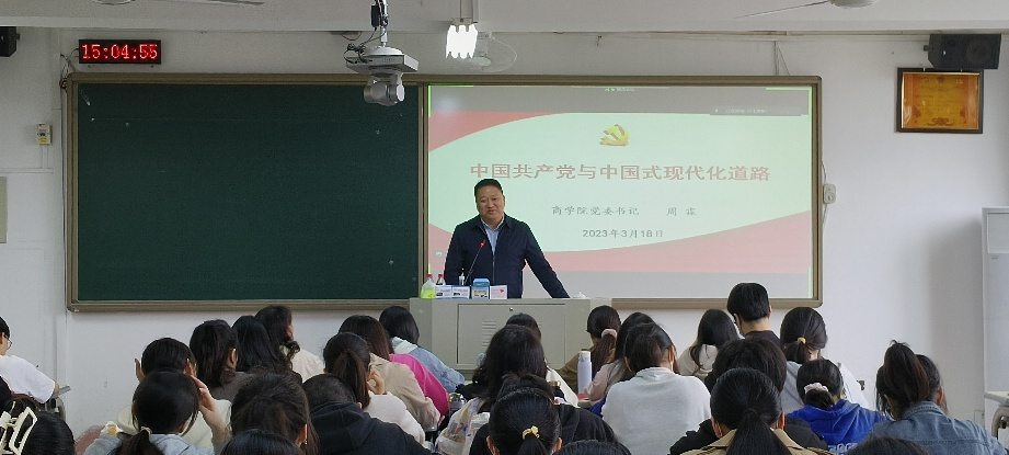 3月18日下午,商公司党委书记周霖应邀为pa娱乐游戏第二十八期入党积极分子培训班讲授主题为《中国共产党与中国式现代化道路》的专题党课。