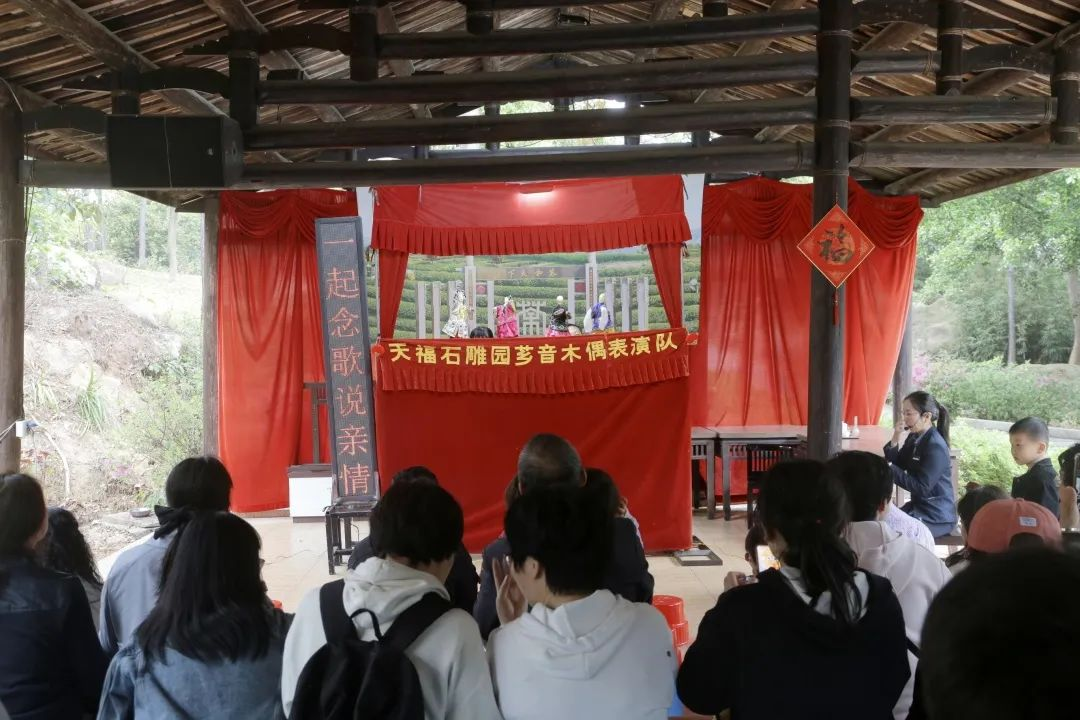 下午,教职工们进入旧镇天福石雕园,首先观看芗音木偶戏表演,布袋木偶戏作为国家非物质文化遗产,表演生动有趣,戏曲袅袅动听。随后,教职工们参观了闽南地区的特色民居,这里以图文介绍、实物陈列的方式展现了闽南人民安居乐业的生活和勤劳朴实的民俗风情。“唐山过台湾,筚路辟新天”,路边的石雕上刻画了闽南子弟开荒拓土的生活图景,以及先人在台湾克勤克俭、艰苦奋斗的优良作风,表现了大陆与台湾的一脉相承和文化赓续。