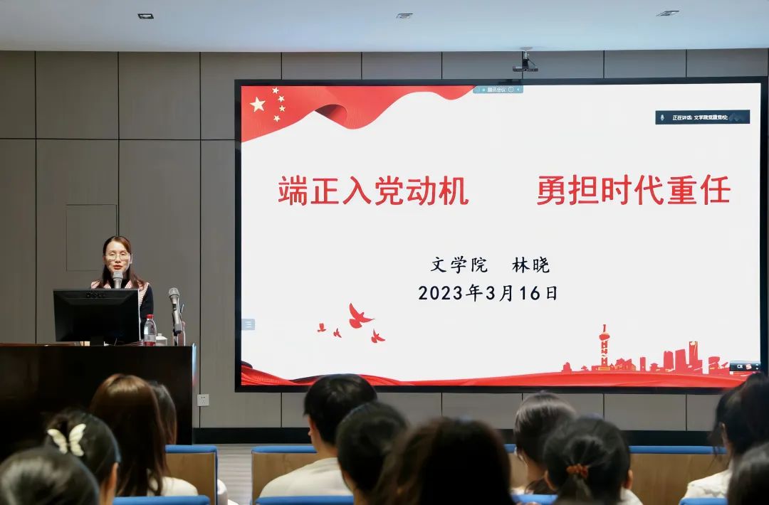 开班动员后,林晓以《端正入党动机,勇担时代重任》为主题为学员们讲授了党性教育第一课。课程主要围绕“什么是入党动机?”“为什么要端正入党动机?”“如何端正入党动机?”“怎样把动机转化为行动?”四个方面展开。林晓强调入党动机是一个人要求入党的内在原因和真实目的,她指出端正入党动机是实现党的最终目标的客观要求,是保持党的先进性和纯洁性、不断巩固党的执政地位的客观需要,是经受党组织长期考验的思想基础和精神动力。针对“如何端正入党动机”问题,林晓强调,一是要在思想上端正:主动接受党组织的教育和考察,认真学习习近平新时代中国特色社会主义思想,树立正确的入党动机;二是要在行为上端正:自觉加强党性修养和锻炼,不断端正入党动机;三是要在态度上端正:正确处理入党过程中的几个矛盾和关系,用正确的入党动机克服不正确的入党动机。最后从四个方面讲述如何把动机转化为行动:一是加强学习,强化理论武装;二是遵循党章,始终保持先进性;三是提升素质,增强服务本领;四是爱国奉献,勇担时代重任,真正做到在思想上、组织上、行动上入党。