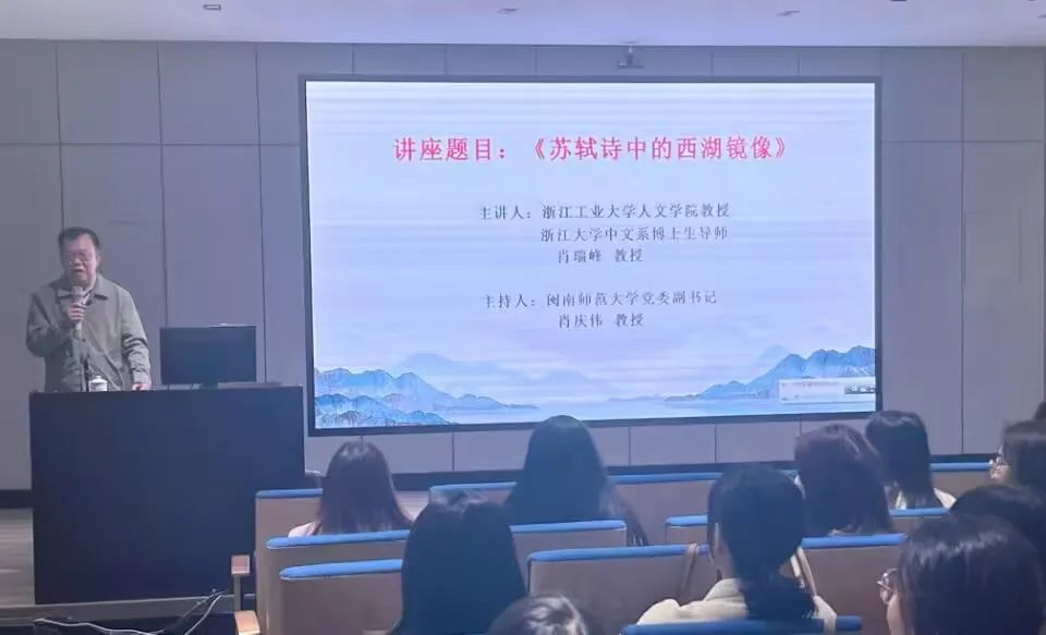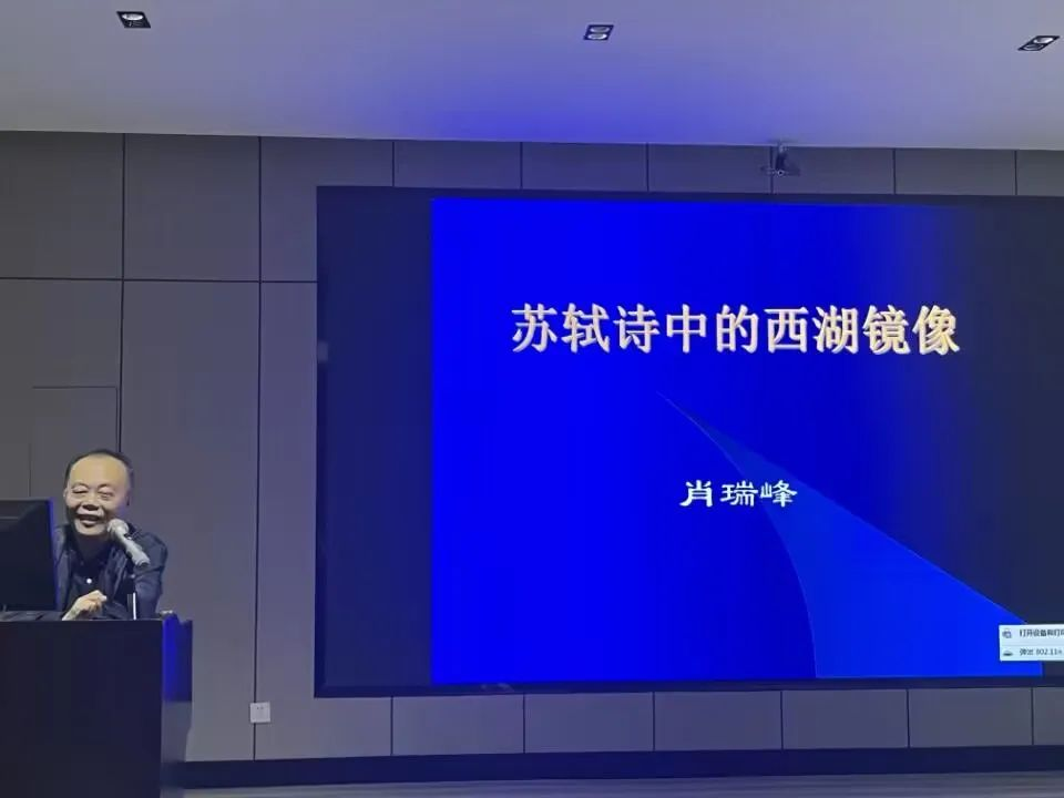 3月16日下午,浙江大学中文系博士生导师肖瑞峰教授应邀到公司开展“苏轼诗中的西湖镜像”的讲座,讲座在博东109举行,讲座由公司党委副书记肖庆伟教授主持,pa娱乐游戏经理黄金明教授出席。