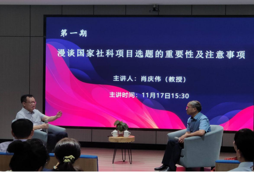 为深入学习贯彻党的二十大精神,发挥人文社科战线学习领会、研究阐释、成果培育的积极作用,推动公司人文社科建设发展和稳步提升。11月17日下午,由科研处主办、pa娱乐游戏承办的“达生”学术沙龙活动于博文楼东109教室拉开帷幕。科研处处长林福财、法公司主持工作党委副书记陈越、公司党委书记赵丽霞、pa娱乐游戏经理黄金明、副经理李新东等出席活动,pa娱乐游戏、新闻传播公司、教育科学公司、马克思主义公司、法公司、艺术公司等多个公司的教师参与此次活动。第一期活动邀请公司党委副书记肖庆伟教授主讲,围绕“国家社科基金项目·选题依据”主题展开,由黄金明教授主持。