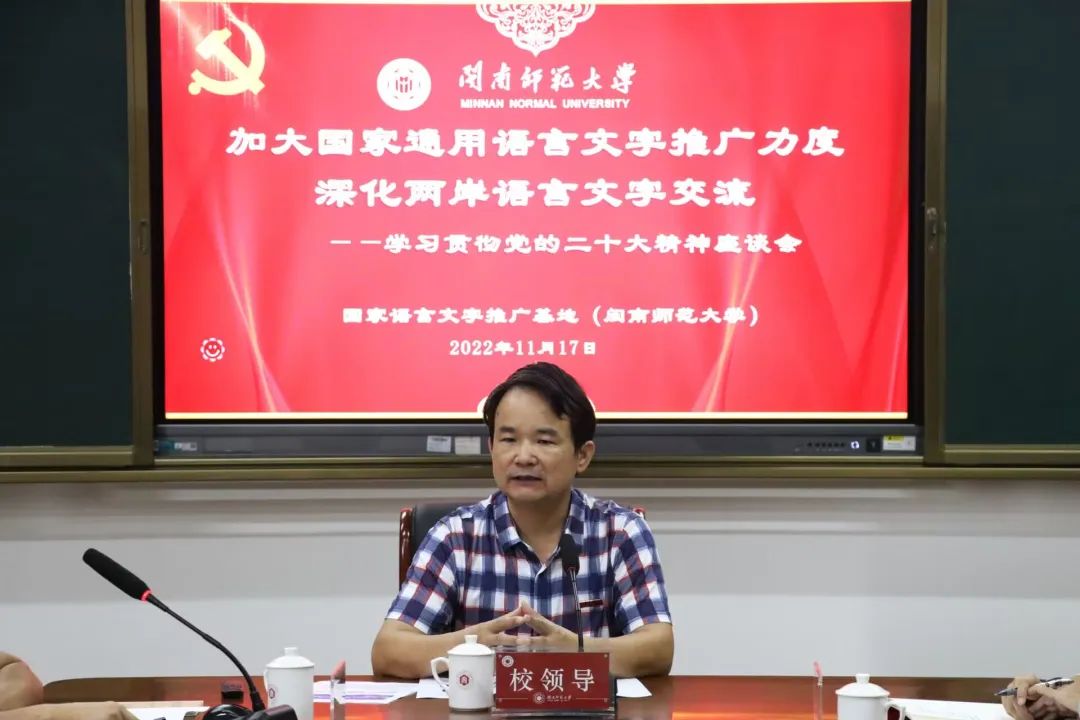 会议最后,黄金明强调pa娱乐游戏将进一步提高政治站位,深刻领会党的二十大精神,以更加积极昂扬的状态推广国家通用语言文字,推动两岸语言文化交流,为服务国家战略贡献力量。