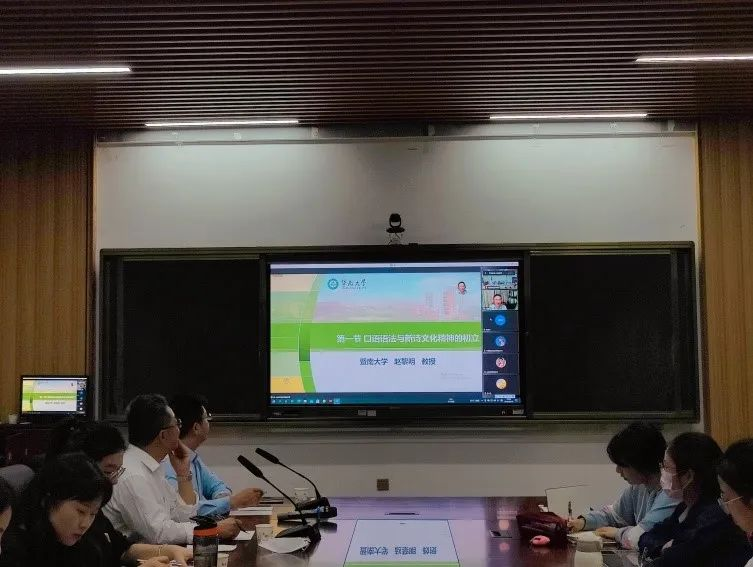 讲座开始,赵黎明教授总的介绍了本场讲座的大致内容,即口语语法与新诗文化精神的初立,随后依次讲解了中国新诗中口语语法的运用引发的审美范式的古今转变,以及文化精神的革命性变化。口语语法在诗中的运用,不仅推动了诗的表达革命,还催生了一种新的文化精神,具有重要的诗学意义。