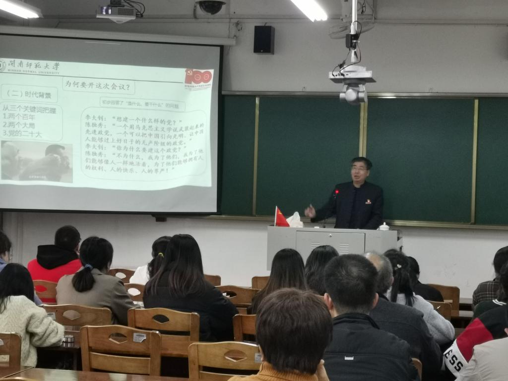 为深入学习贯彻党的十九届六中全会精神,深入领会全会精神内涵,12月23日下午15时,公司党委邀请马克思主义公司经理陈再生教授为pa娱乐游戏教师和部分研究生党员作题为《百年恰是风华正茂——学习十九届六中全会精神》的宣讲讲座,宣讲会由公司党委书记赵丽霞主持。