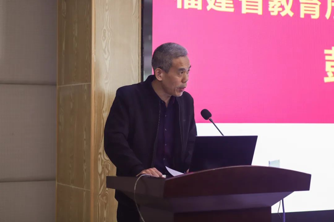 ▲省教育厅体育卫生艺术教育与语言文字处二级调研员彭杰讲话