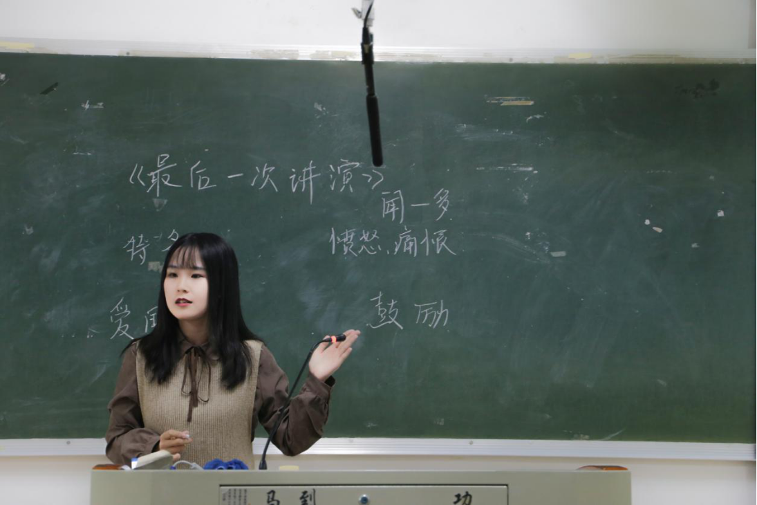 赛后,刘闽英老师作为评委代表,从板书设计、教学方法、授课内容等方面进行详细点评,肯定选手们认真态度与教学能力的同时,也指出不足之处,并以文言文教学为例作出指导建议,鼓励同学们提高授课内容针对性,综合运用教育资源,进一步提升教学质量与水平,更好地开展教育实践活动。