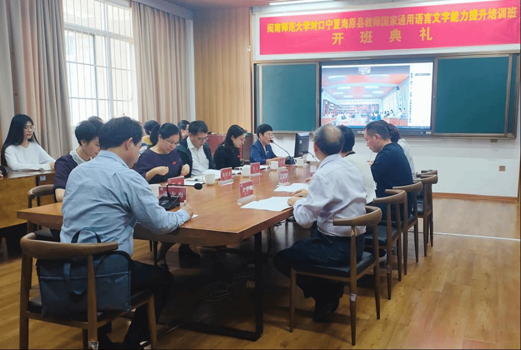2021年11月5日上午,公司在pa娱乐游戏博东一楼会议室举行普通话培训班开班典礼。公司党委常委、副董事长、国家语言文字推广基地负责人张龙海以及pa娱乐游戏、科研处、教务处、闽南文化研究院、海外教育公司等部门的相关领导以及项目团队教师、宁夏海原县培训班学员参加了典礼。