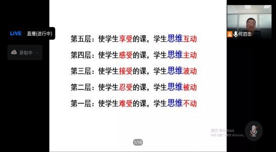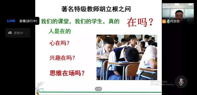 “我国基础教育改革正从课程改革走向教学改革。”何老师分析道:课程改革是针对教学内容而言的,教学改革针对的则是教学方法与形式。因此,一线教师在教学中应该“强化课堂主阵地作用,切实提高课堂教学质量”,引导员工主动、积极地参与过程,具体表现为“创设任务驱动情境”、“启发员工积极思维”、“注重学习方法引导”三个方面。他表示:教师要注重方法引导,使员工处于“愤——悱”状态中,让学习真正发生,实现深度教学。他以自己在疫情期间所创设的《红楼梦》任务驱动教学设计:《假如贾宝玉得了新冠肺炎,最有可能传染的五个人是谁?》为例,向大家具体展示了如何布置有趣、有效的任务,以切实驱动员工的学习。