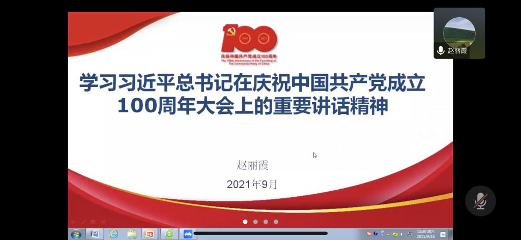 为深入学习贯彻宣传习近平总书记在庆祝中国共产党成立100周年大会上的重要讲话精神,扎实推进党史学习教育,9月18日下午,pa娱乐游戏员工第一党支部通过腾讯会议开展“学习‘七一’重要讲话精神”专题党课。本次党课由支部联系人、公司党委书记赵丽霞同志主讲,支部书记许新华主持,支部全体党员参与。
