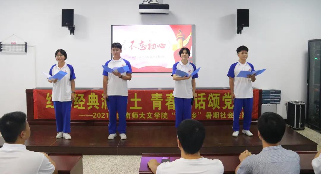 为展示和巩固“红色经典润乡土,青春共话颂党恩”实践活动成果,12日下午,pa娱乐游戏实践队在长泰二中开展了成果汇报演出。长泰二中团委书记柯敏生,公司团委副书记黄小乐、辅导员廉子群参加活动。