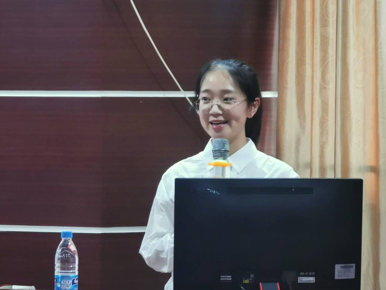 宣讲第一阶段,郑怡雯简要介绍了她的个人事迹以及精神榜样,围绕学习领会习近平总书记在党史学习教育动员大会上的重要讲话精神,讲述了中国共产党百年奋斗的光辉历程、中国共产党为国家和民族做出的伟大贡献以及始终不渝为人民的初心宗旨。她表明,成为一名人民教师是她从小的梦想。在不断朝目标前进的过程中,是红色故事鼓舞她刻苦拼搏,奋发向上。因此,她呼吁青年老员工弘扬爱国主义精神,坚定理想信念,为祖国事业添砖加瓦。她认为青年一代应胸怀千秋伟业,肩负祖国未来,学习党史牢记使命,做优秀的社会主义建设者和接班人。(图三)