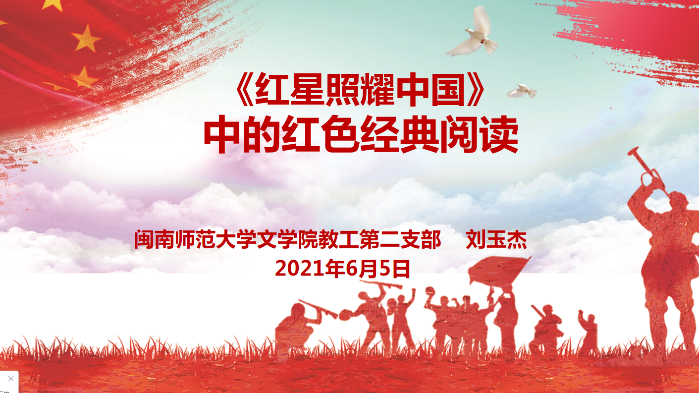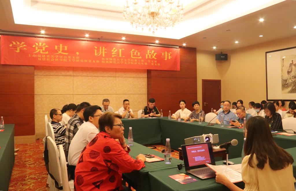 为庆祝中国共产党成立100周年,通过学习党史增强对党的认同感和归属感,“学党史,讲红色故事”活动于6月5日晚在漳州宾馆水仙楼玉兰厅顺利举行,本次活动由福建省美学学会党支部、闽南师大pa娱乐游戏教工第二党支部、福建省社会科公司文学研究所党支部、闽南师大pa娱乐游戏研究生第二党支部主办,福建社会科公司文学研究所副所长陈舒劼、pa娱乐游戏教师胡明贵主持会议,福建省美学学会会员,福建社科院文学所研究人员以及闽南师大pa娱乐游戏师生共约40人参与。