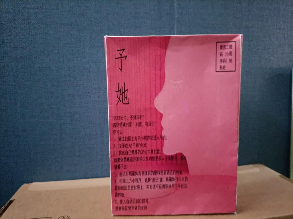 “岂曰无巾,予她共行”的成员一边现场展示成品共享卫生巾小箱,一边讲述将它设置在公厕小角落,为有需要的女性提供紧急救助的功能;