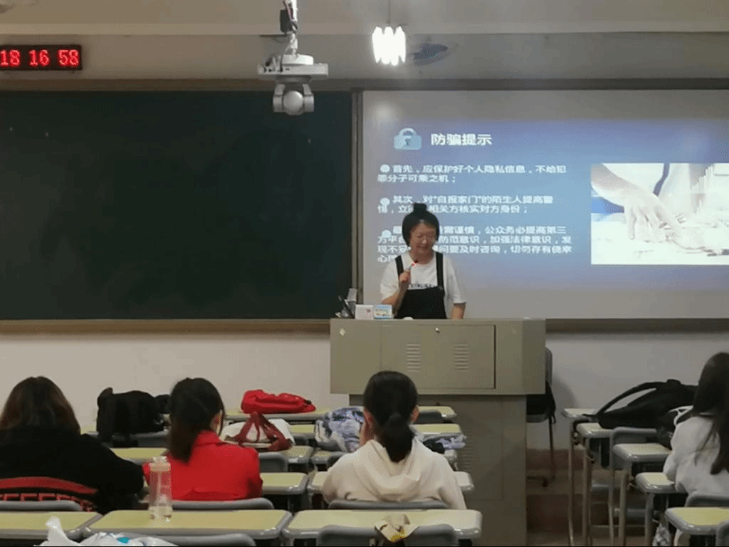 本次宣讲主要从电话短信诈骗、“钓鱼网站”诈骗、网络不良借贷诈骗、常见骗术这四方面为大纲开展。从电话短信诈骗的定义、特点、招数等;“钓鱼网站”诈骗的定义、案例、民警提醒等;网络不良借贷诈骗的定义、案例、应对策略和建议以及普及正确接贷方法等;常见骗术的案例这些方面来详细讲解。向同学们普及防骗安全知识,知道防骗关键在于防,提高自我保护意识,学会了如何防骗,如何辨别真伪、如何对待可疑人员。