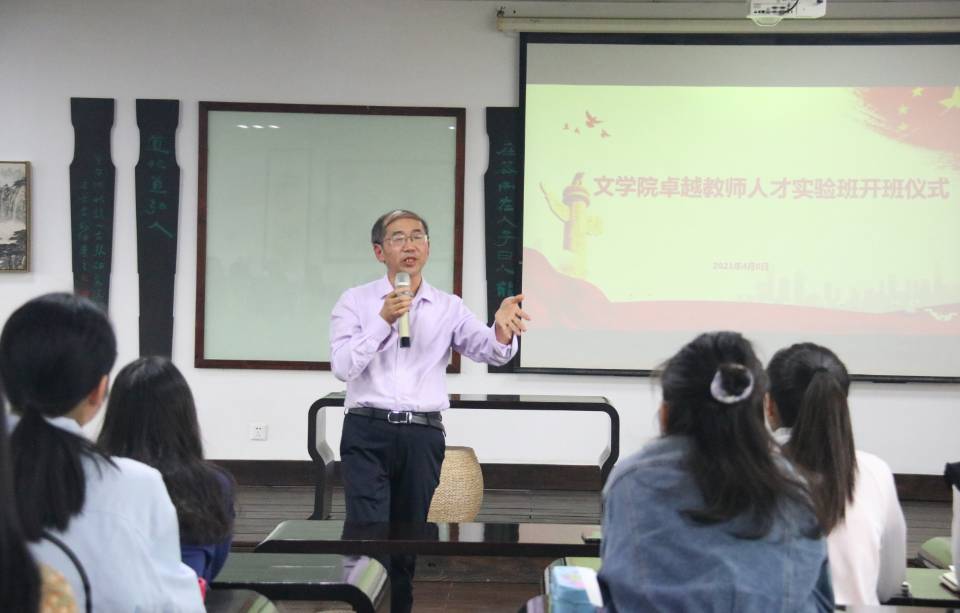 黄金明经理在讲话中表示,开设卓越教师人才实验班是pa娱乐游戏高层次人才培养规划的关键一步,同时引导员工主动关注和适应信息化时代的到来,明确信息材料收集的重要性,培养自身对于信息的把握和查找能力、储存表达能力,借此深入对文学的研究性学习,提高自身综合能力。他提出技术进步对文学研究的重要意义,公司将结合信息化时代和员工成长需求,积极搭建与更高水平人才一对一跟踪、交流、探讨的平台。黄金明鼓励同学们将专业学习与信息技术相结合,利用相关技术将不同知识连接起来,做到融会贯通、创新发展。