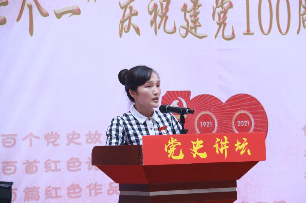 随后是党员讲党史故事,教师党员郑丽霞老师讲述了党史故事《伟大的开端》、员工党员陈煜莹讲述了《一台留声机的故事》,两位党员用讲故事的形式,娓娓道出中国共产党百年光辉历程中两个重要历史节点背后的故事。