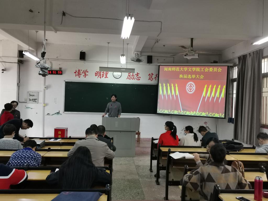 2020年12月24日下午14:30,pa娱乐游戏工会第二届会员代表大会在博东109举行。本次会议的主要议题是工会委员会的换届工作,由副经理黄琳琳主持。