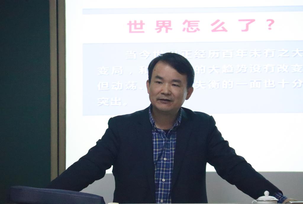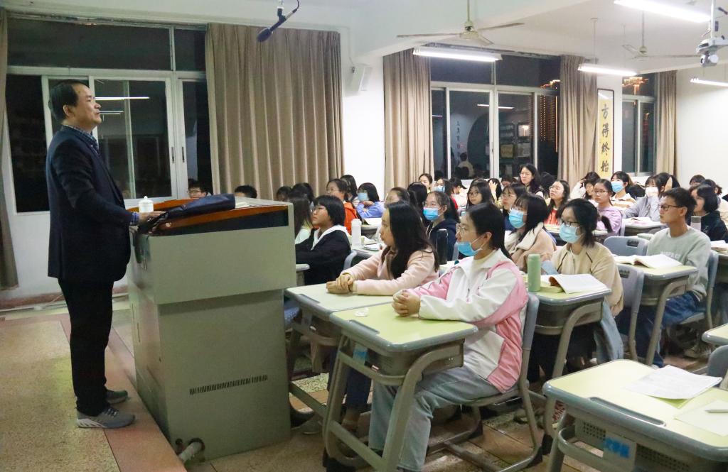 12月22日晚,张龙海副董事长莅临pa娱乐游戏博东404教室,为2020级汉语言文学专业的同学讲授一堂题为“携手共建人类命运共同体”的形势政策课。