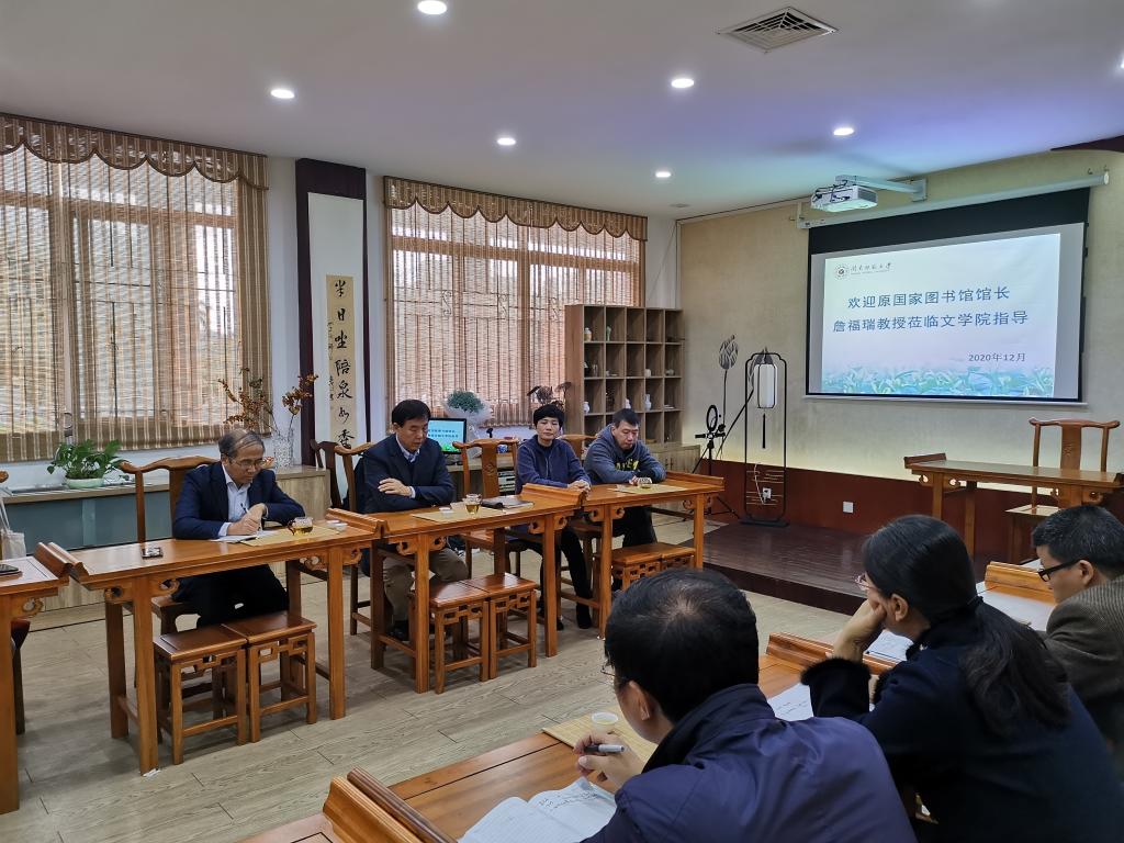 2020年12月21日下午15:00,pa娱乐游戏邀请原国家图书馆馆长詹福瑞教授,在博东114教室,与中国古代文学专业、中国古典文献学专业教师,围绕“新时期古代文学研究的视野”主题展开学术交流。会议由黄金明经理主持。
